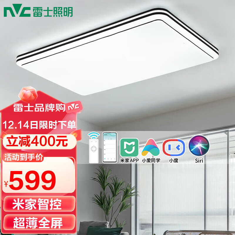 雷士(NVC)LED吸顶灯 智控雅黑客厅灯双层发光灯饰现代简约卧室灯具套餐价格:999.00元!