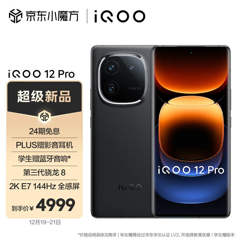 vivo iQOO 12Pro 16GB+256GB赛道版 2K E7 144Hz屏幕 大底主摄潜望式长焦 第三代骁龙 8 自研电竞芯片Q1 手机价格:4999.00元!