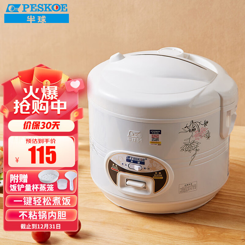 半球(Peskoe)电饭煲4L电饭锅 煮饭/汤粥可切换MW-DS40A1-B价格:115.00元!