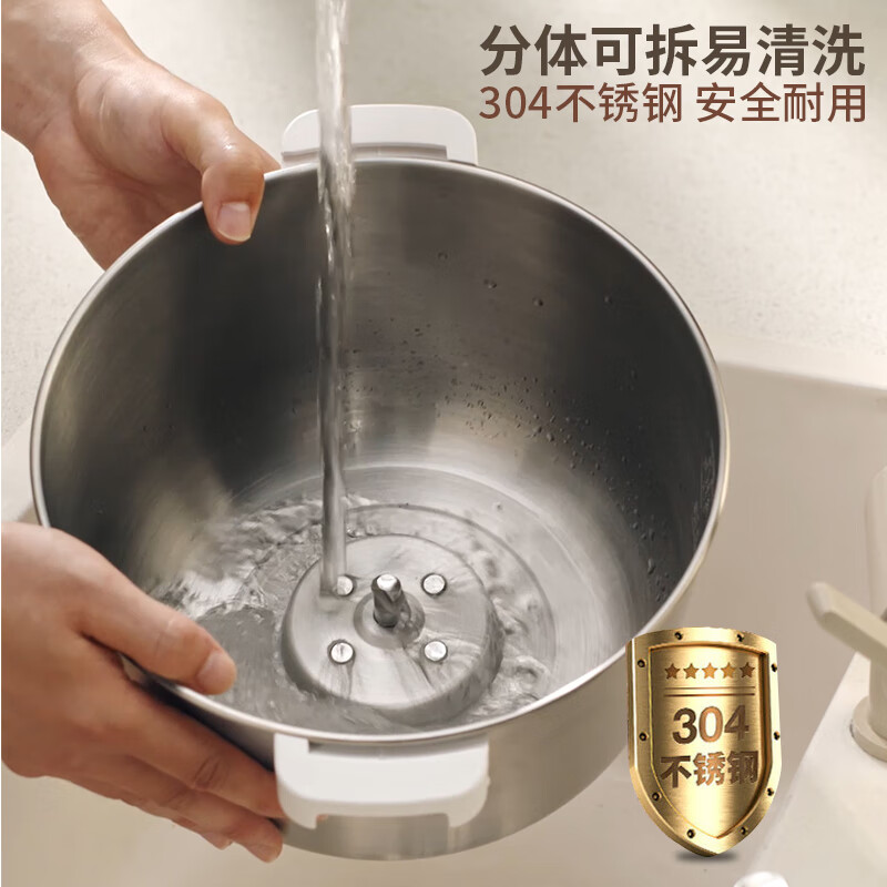4、大容量,噪音很小,仿手工揉面效果很好,只要把面粉和水、酵母粉按比例放好就行,做面食省时、省力,简单操作,锅胆是304材质的,本来想买厨师机的,但厨师机占地方,便宜的厨师机声音也大,如果不经常做面包这款和面机就够用,大约半个小时手套膜就好了,很不错
