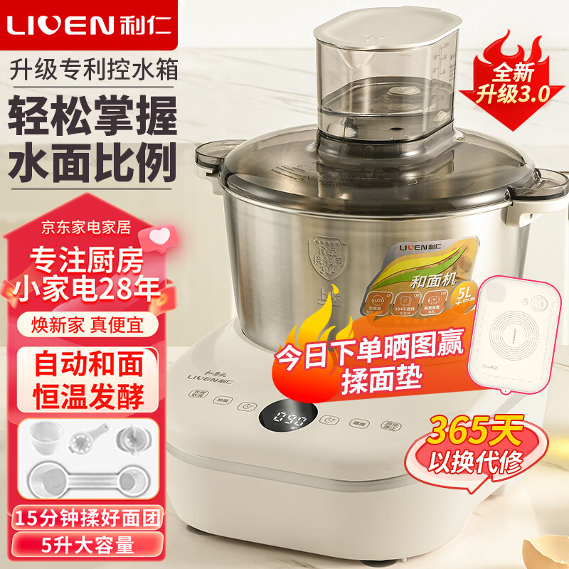 利仁(Liven)和面机家用厨师机揉面机全自动和面醒面一体机搅面机多功能恒温醒面发面机料理机5升 HMJ-D5600价格:379.00元!