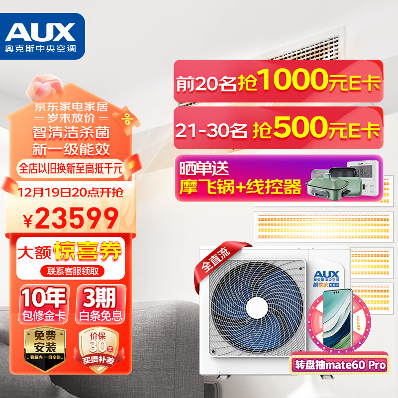 奥克斯(AUX)中央空调大6匹一拖四家用小多联机风管机1级能效全直流变频嵌入式空调适用三室一厅DLR-H160W(G1)价格:23599.00元!