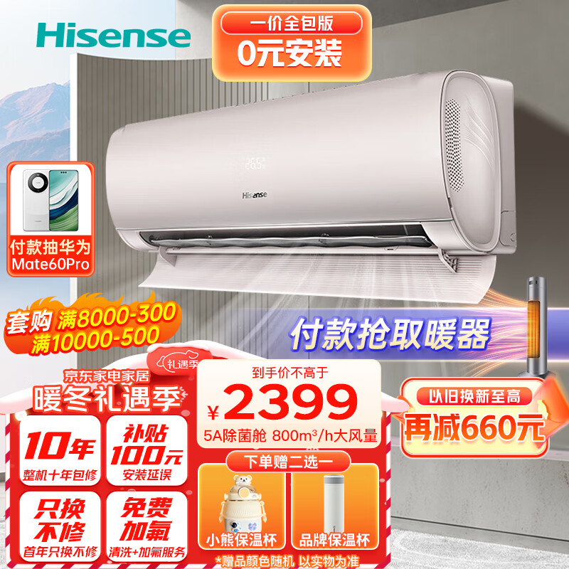 海信空调1.5匹挂机新一级能效免安装费大风量速冷暖防直吹5A除菌舱壁挂空调KFR-35GW/S550-X1以旧换新价格:2399.00元!