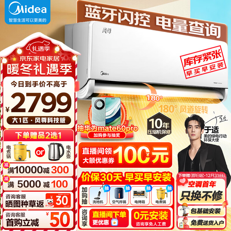 美的(Midea)空调大1匹挂机 风尊科技版 新一级能效 变频冷暖 电量查询 壁挂式 KFR-26GW/N8MXC1 卧室书房空调价格:2799.00元!