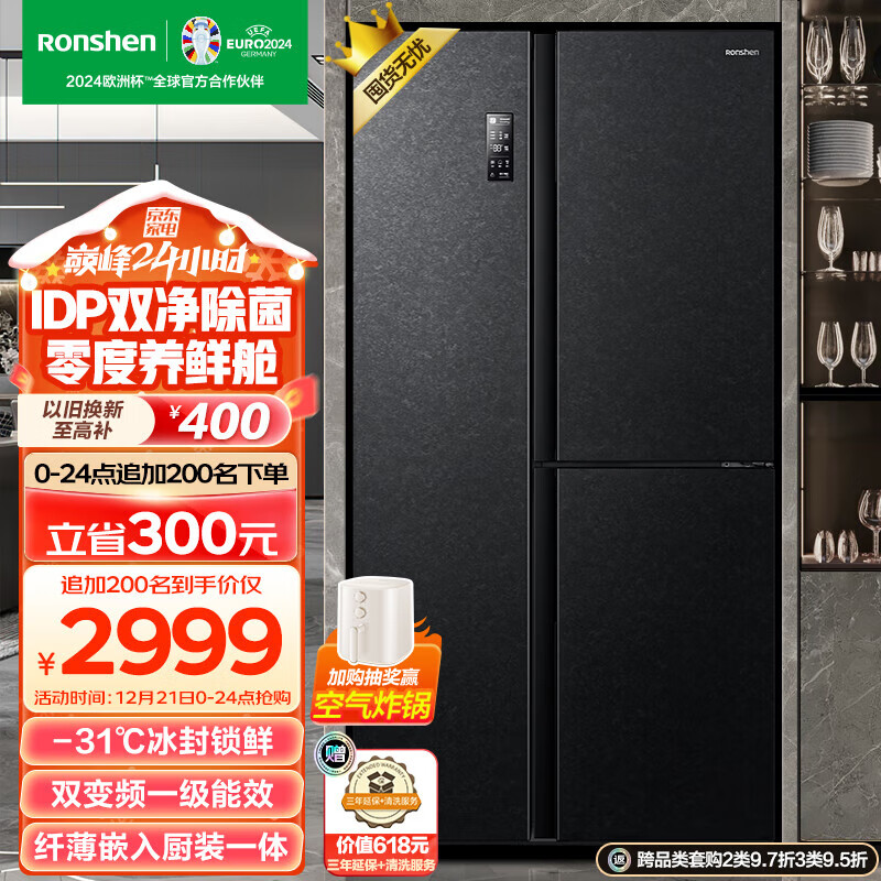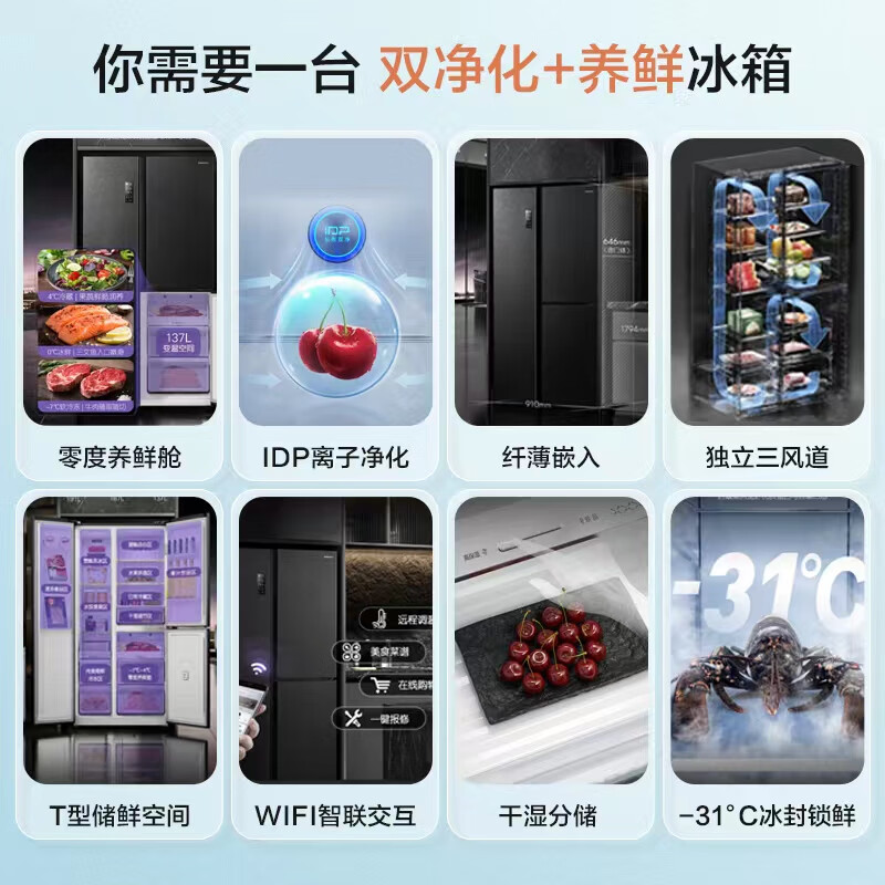 容声(Ronshen)【原鲜双净】515升变频一级能效T型双开门三开门冰箱家用无霜除菌超薄嵌入式BCD-515WD16HPA价格:3299.00元!