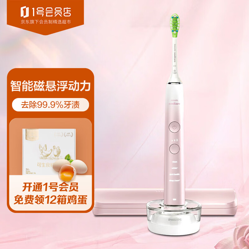 飞利浦电动牙刷钻石系列成人声波震动牙刷男友女友生日礼物智能APP可视化洁齿HX9911渐变粉价格:789.00元!