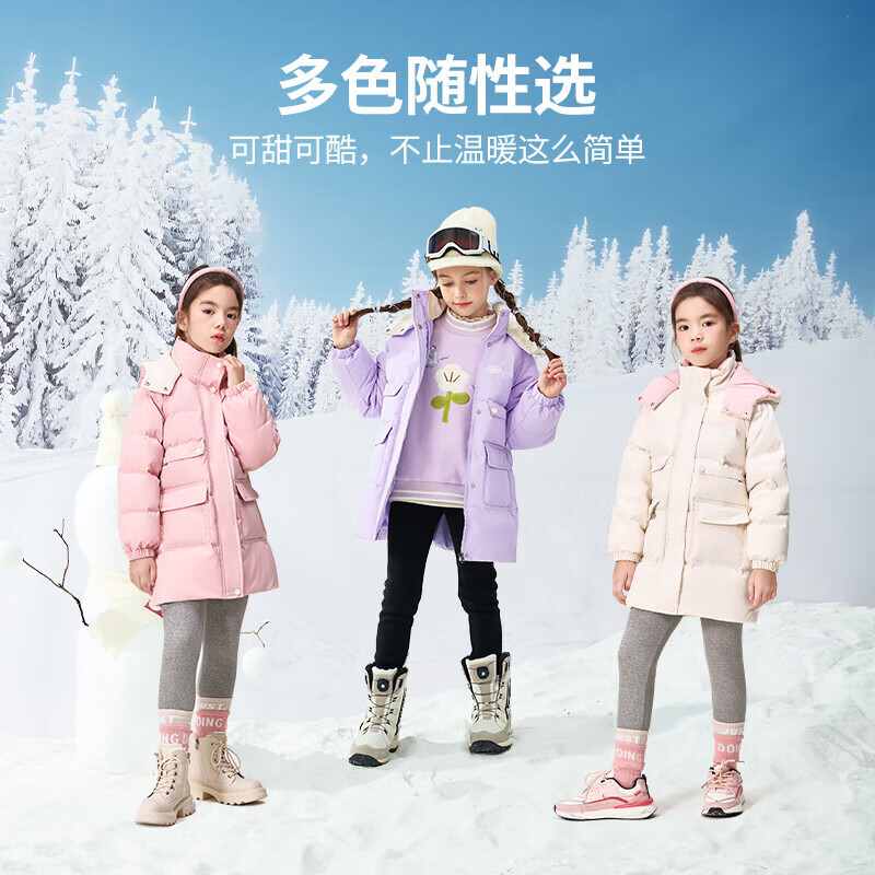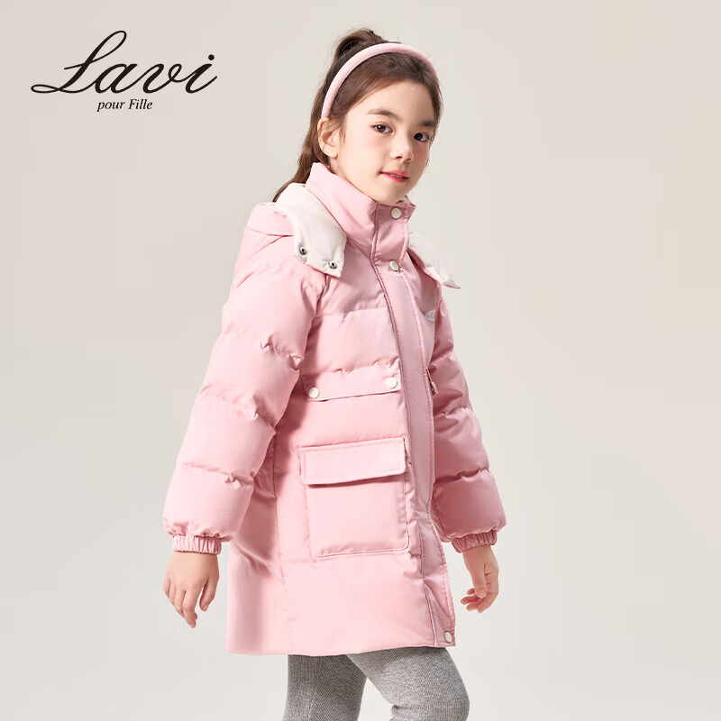 Lavi童装mqd旗下儿童羽绒服加厚女童中长款保暖外套 浅粉 140价格:509.00元!