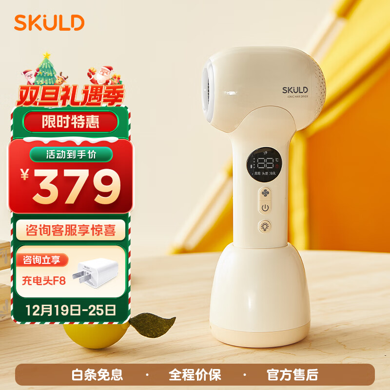 SKULD儿童电吹风无线宝宝吹屁屁 恒温吹风机低辐射低噪音D3价格:379.00元!