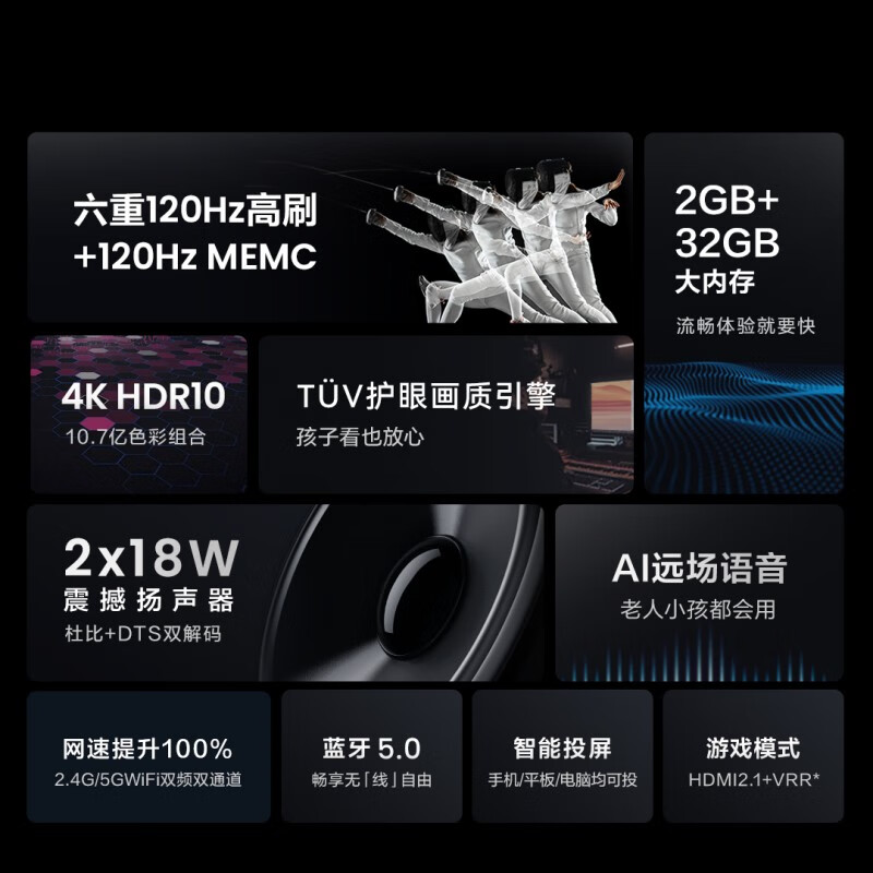 3、很轻巧,屏幕清晰,效果不错,物美价廉,装了电信的宽带,看电视也更清晰稳定,总之不错,这个价位,很满意了,投屏也比我以前买的夏普更快。没有上墙,自己安装的,非常简单。