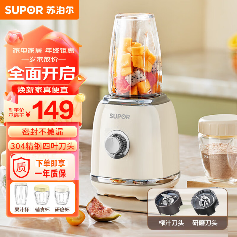 苏泊尔(SUPOR)榨汁机 三杯双刀家用榨汁杯 小型果汁机 易清洗电动水果机搅拌机婴儿鲜榨辅食机 JS43D-250价格:149.00元!