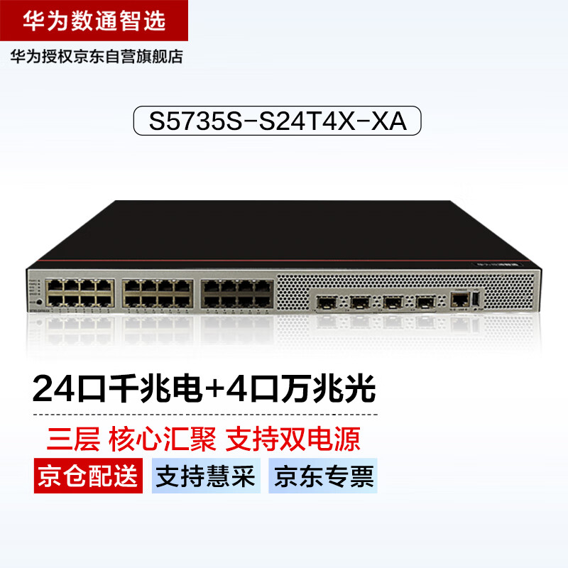 华为数通智选S5735S-S24T4X-XA三层汇聚万兆交换机24口千兆电4口万兆光双电源可堆叠网管替代S5735S-S24T4S-A价格:4199.00元!