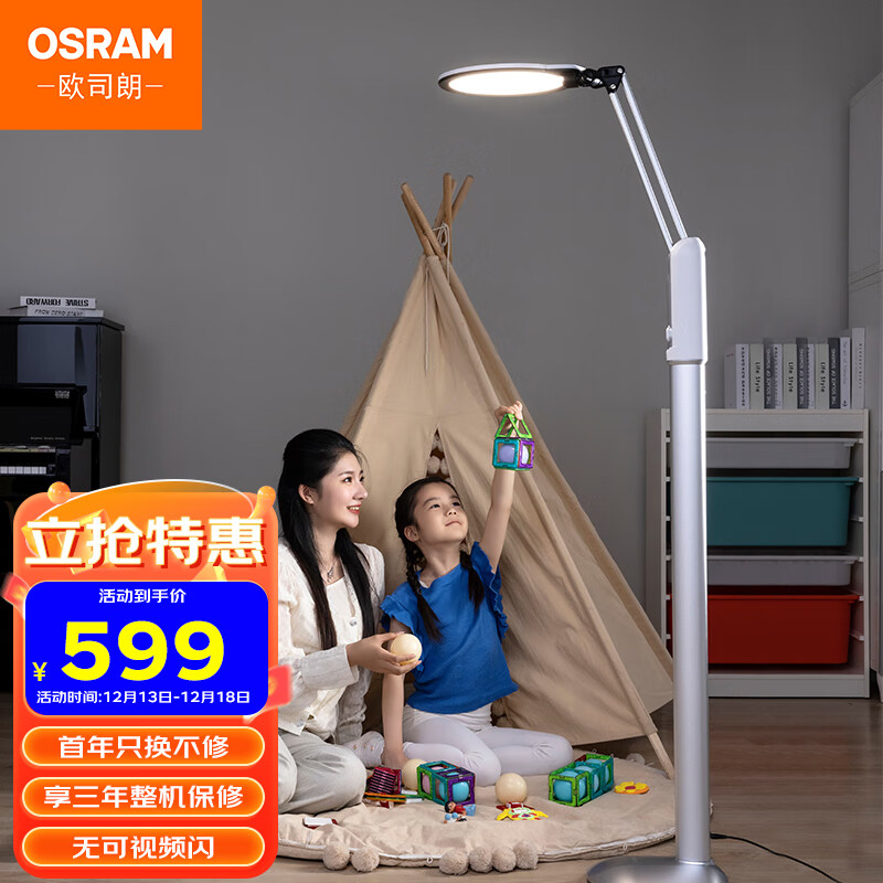 欧司朗(OSRAM)客厅卧室书房全光谱调光调色床头灯立式白色落地台灯TZ01价格:799.00元!