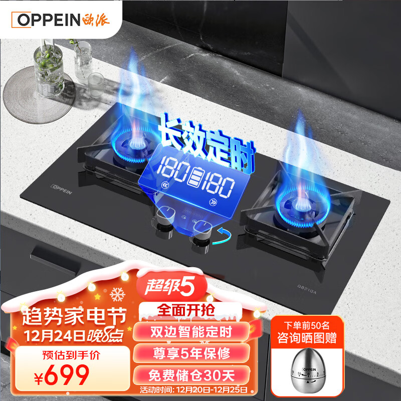欧派(OPPEIN)燃气灶 天然气 家用双灶5.0KW火力猛火灶 180min智能定时 加大内铜火盖台嵌两用JZT-Q821GA价格:699.00元!