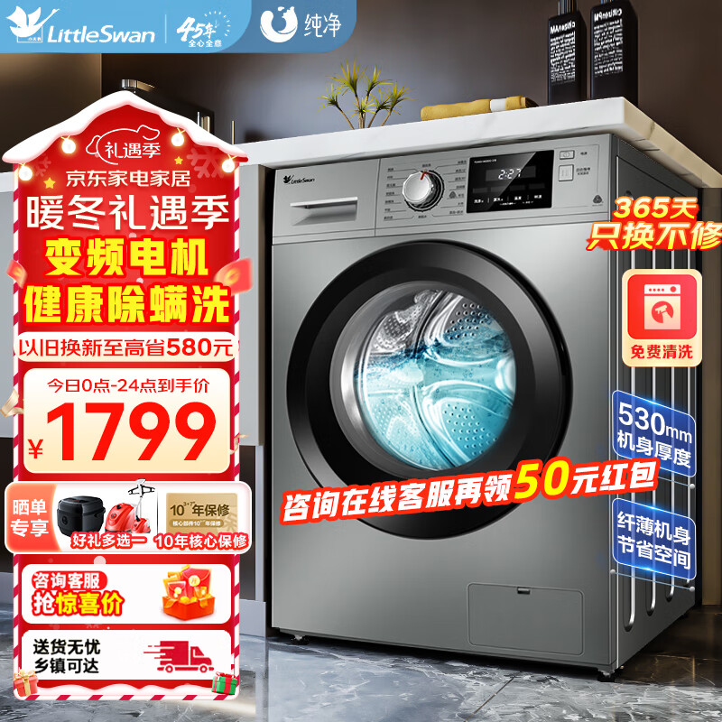 小天鹅(LittleSwan)滚筒洗衣机全自动10KG一级能效大容量家用变频除菌螨消毒洗高温筒自洁 以旧换新TG100-1412DG-S1B价格:1749.00元!