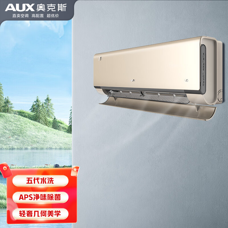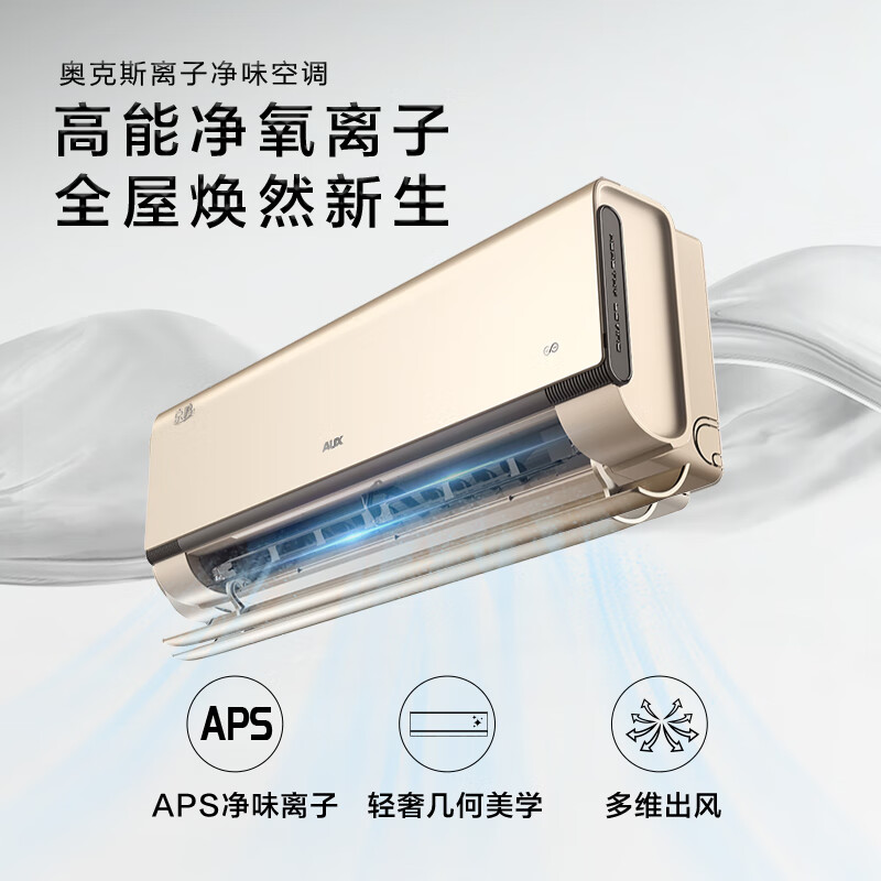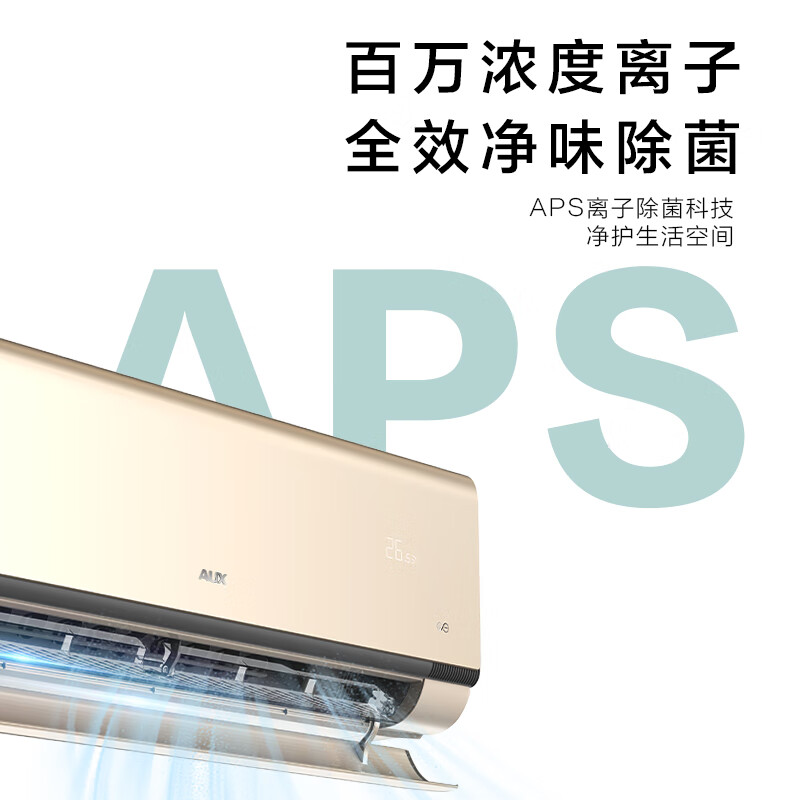 3、奥克斯1.5匹挂机,带APS离子除菌,净味杀菌。一键防直吹。18分贝静音,噪音极低。制冷速度快,快递达到预订温度。性价比极高,非常满意
