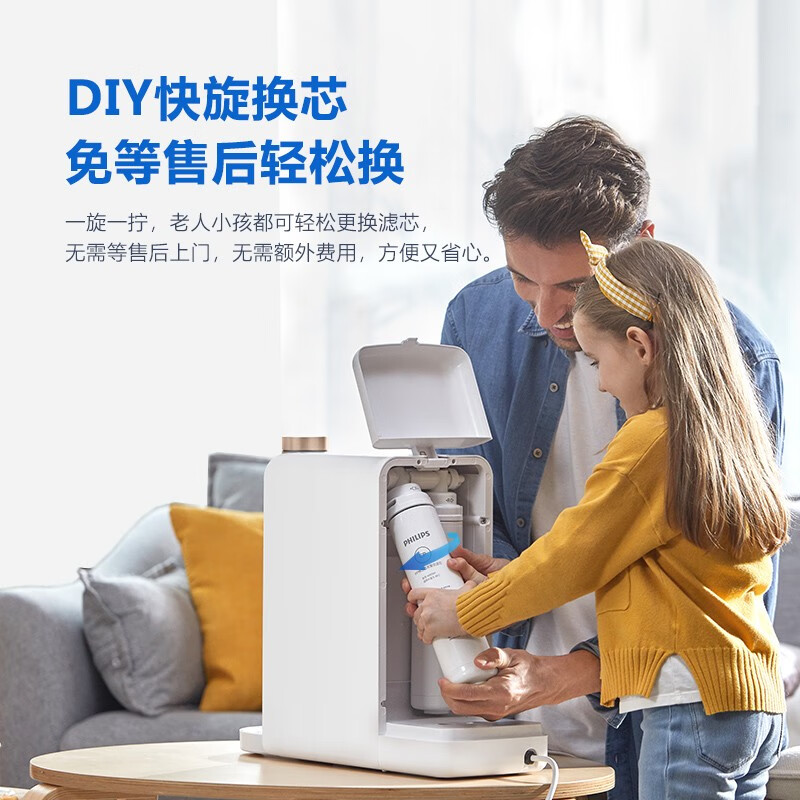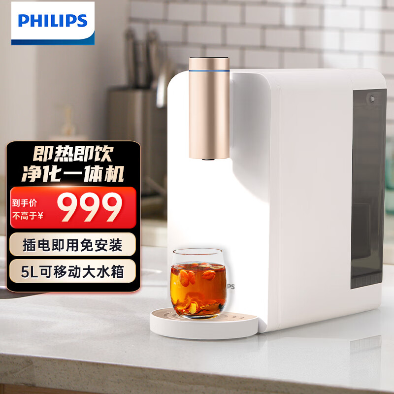 飞利浦(PHILIPS)净水器家用 净水器加热直饮一体机 台上式免安装即热直饮水机 RO反渗透净水器 双芯大水箱 经济款双滤净化ADD6813价格:999.00元!