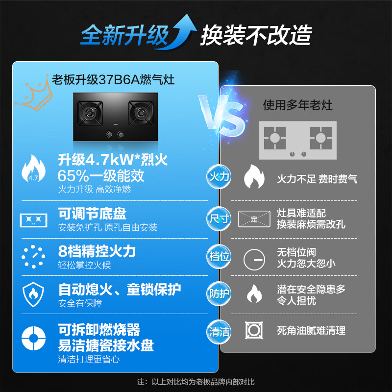 给大家分享下!实实在在的说这款老板JZT-37B6A满意的,价格也很合理的。火力大小:爆炒基本没有问题,火力很大点火速度:一点就开,不存在熄火过点不着的问题外观:镜片材质,很有质感