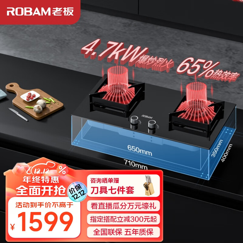 老板(Robam)控火大师37B6A灶具燃气灶天然气灶双灶 升级4.7kW嵌入式钢化玻璃高热效率猛火灶家用可调节灶台价格:1599.00元!
