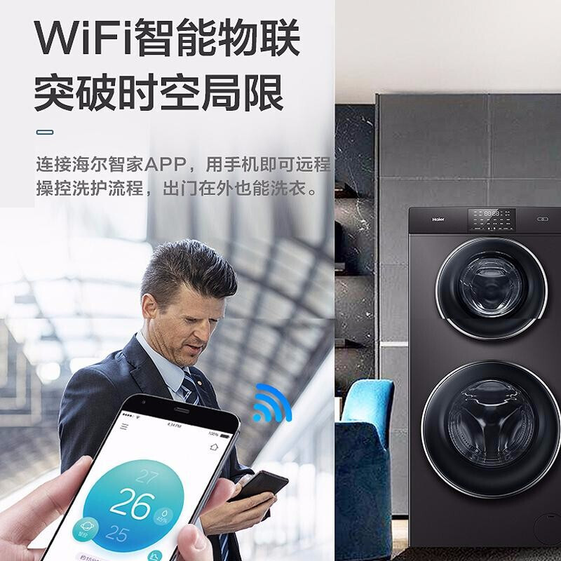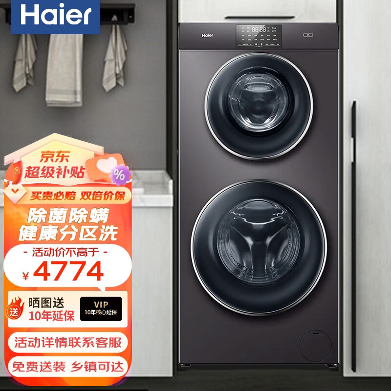 海尔双子洗衣机13kg一级能效变频双滚筒分区洗护家用大容量洗衣机除螨洗 玉墨银XQGF130-B1258U1价格:4774.00元!