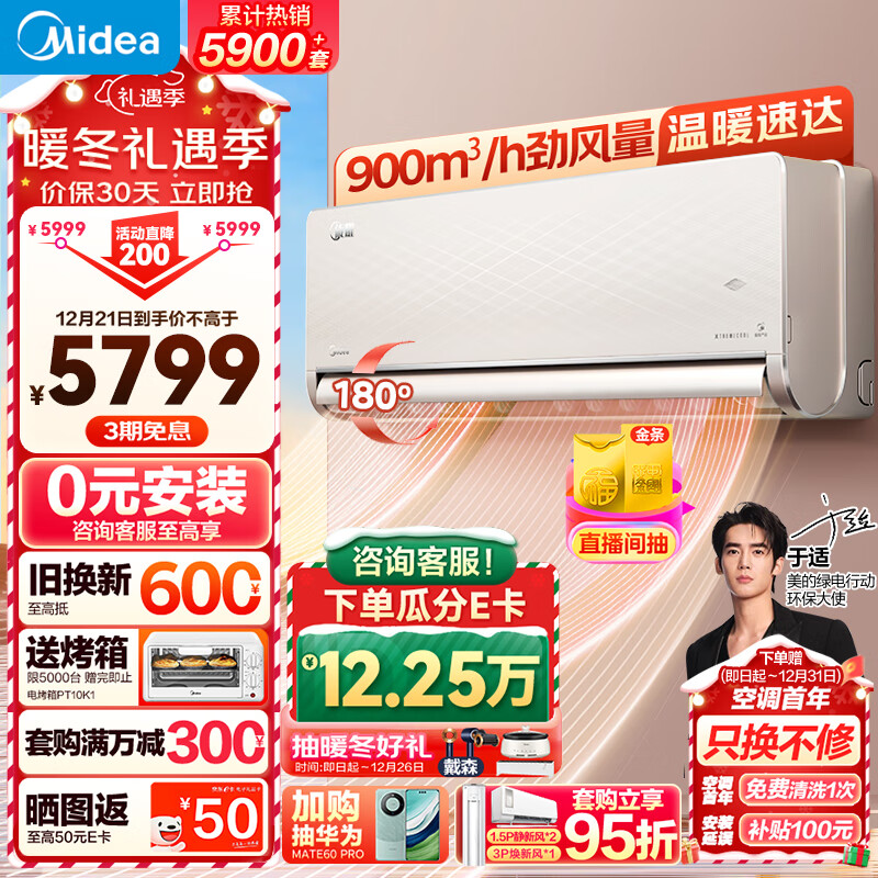 美的(Midea)空调 2匹旋耀 壁挂式空调 大风量客厅商铺挂机 一级能效空调 KFR-50GW/N8MXA1价格:5799.00元!
