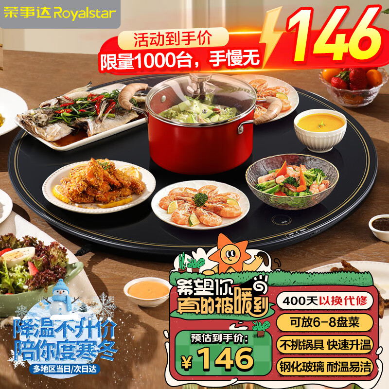 荣事达暖菜板 家用熟菜板保温板 大面积加热板 烘干发酵解冻快速升温多功能加热板 RS-HR380A价格:146.00元!