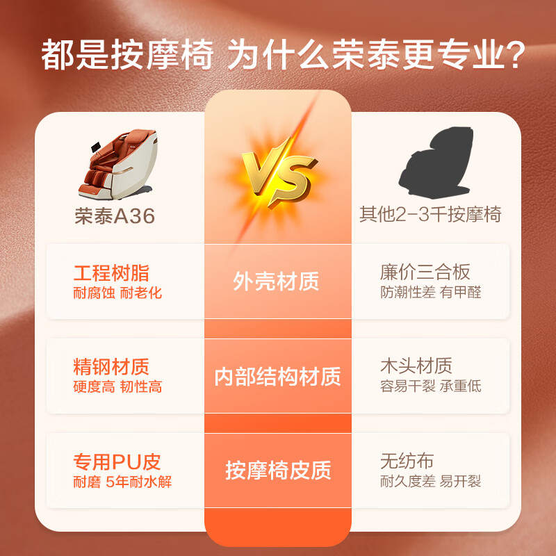 真的要说荣泰A36很喜欢这个外观,质量挺好的,起来还可以吧,魔按的力度够大的。基本上现在这个价钱还对得起做工。这个东西大几千,现在3000以内就可以了。没事儿的,躺上去小眯一会儿。就是腿部不能够成平。