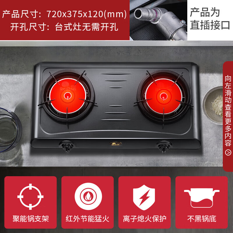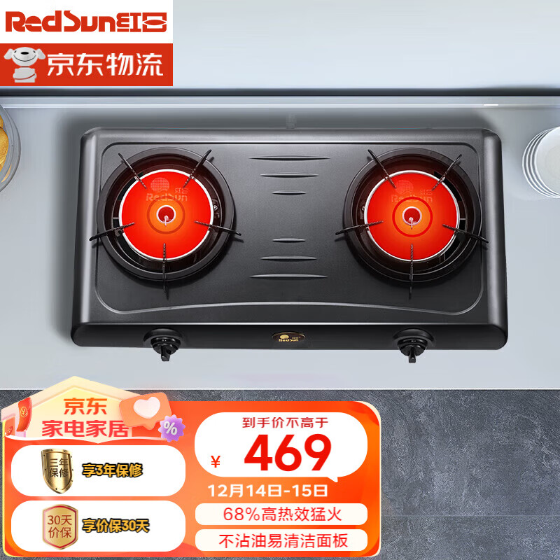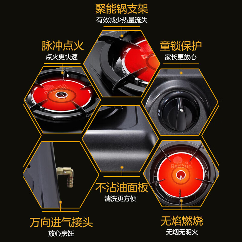红日(RedSun)红外线燃气灶 台式双灶 不黑锅底 熄火保护 不易粘油面板 红外聚能猛火 JZT-E908C(天然气)价格:469.00元!