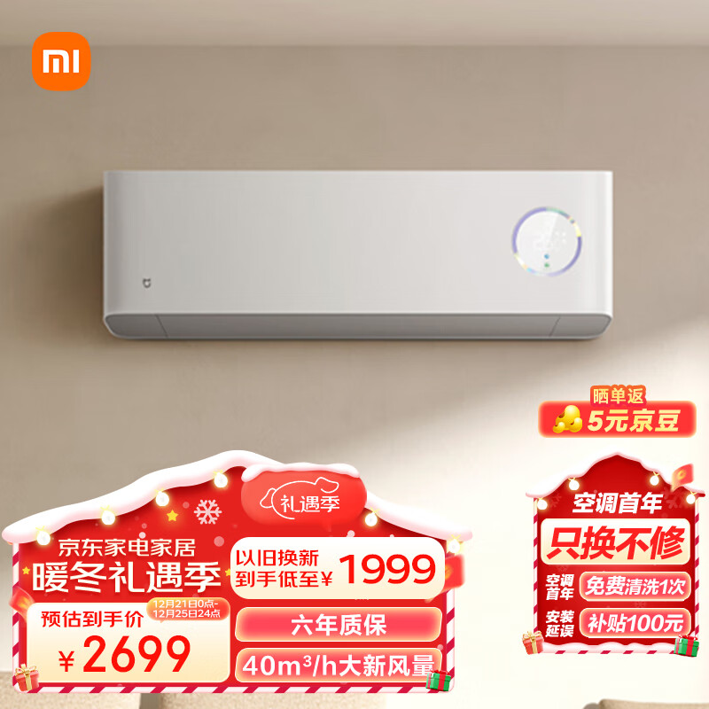 小米米家1.5匹 新风空调 新一级 变频冷暖 40m3/h新风量 壁挂式空调挂机 KFR-35GW/F3A1 以旧换新价格:2699.00元!