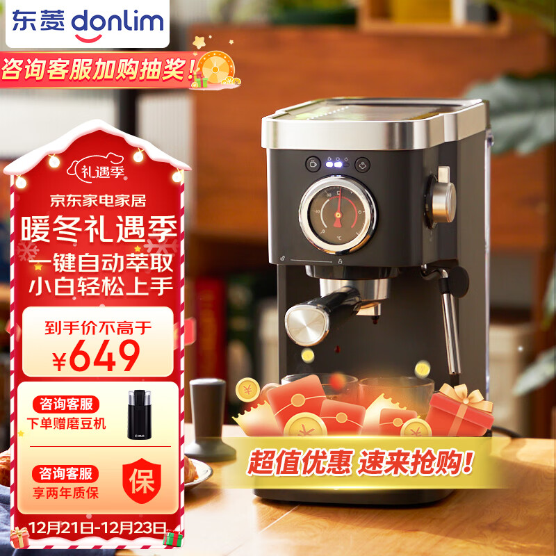 东菱 Donlim 咖啡机 咖啡机家用 意式半自动 20bar高压萃取 蒸汽打奶泡 操作简单 东菱啡行器 DL-6400价格:669.00元!