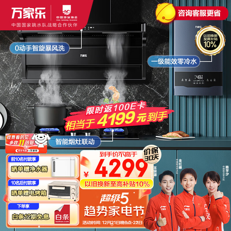 万家乐 烟灶热厨卫三件套 顶侧双吸油烟机 23m3/min烟灶联动WIFI智控16L零冷水AK6+KV063B+16RL7天然气价格:4399.00元!