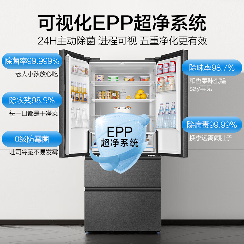 海尔(Haier)510升法式多门四开门电冰箱大容量家用一级能效变频无霜除菌变温超薄嵌入式BCD-510WGHFD59S9U1价格:5299.00元!