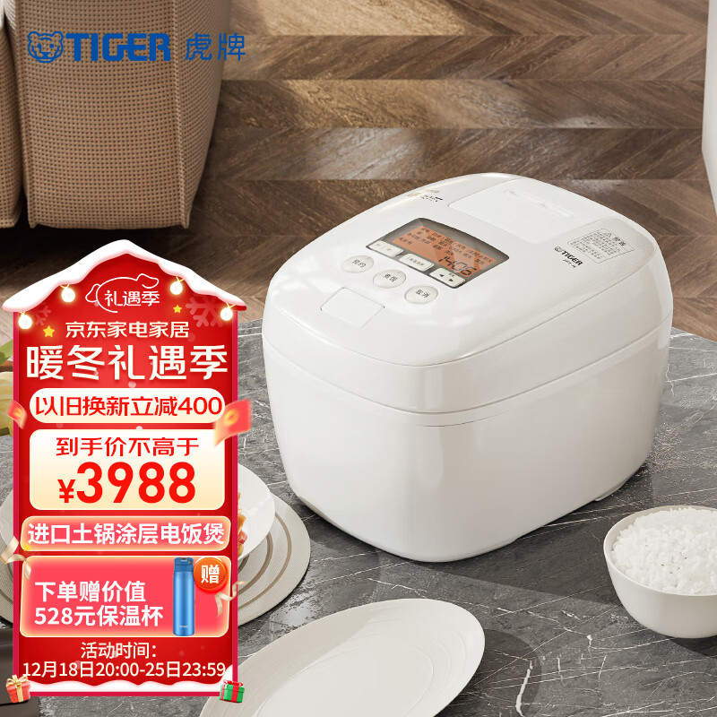 虎牌(Tiger)电饭煲Pro 智能IH 日本进口土锅涂层5L电饭煲3-10人JPT-H18C丝光白价格:3988.00元!
