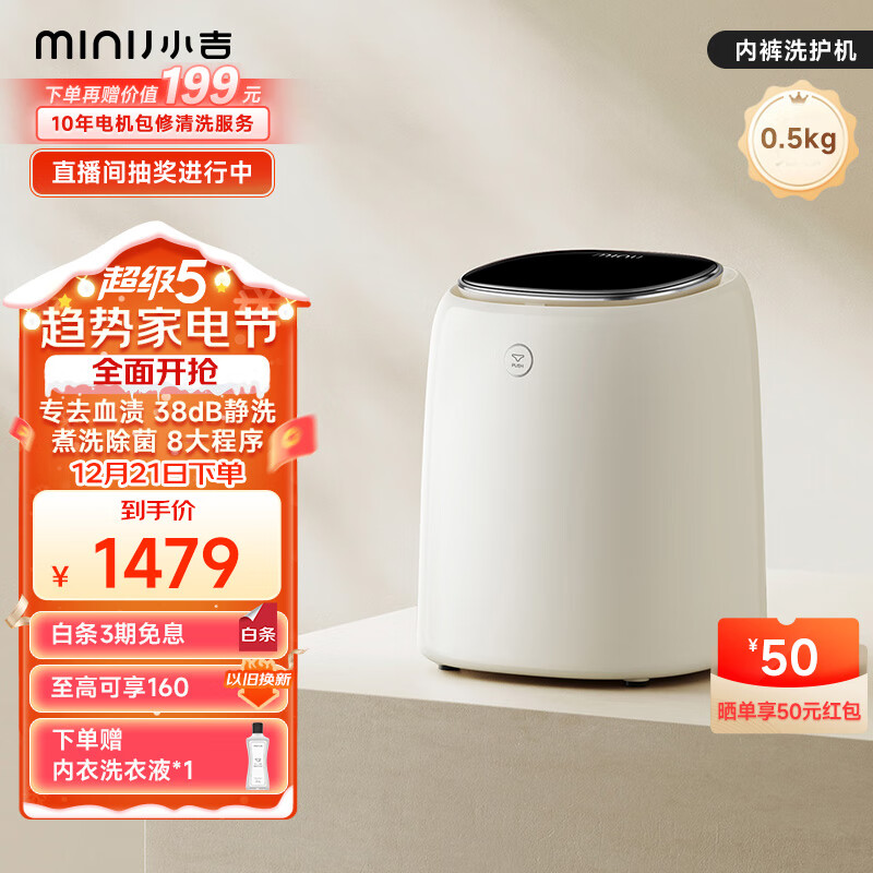 小吉(MINIJ)0.5kg内裤洗衣机 全自动内裤机专用高温煮洗洗内裤机变频内衣洗衣机 U10-M价格:1479.00元!