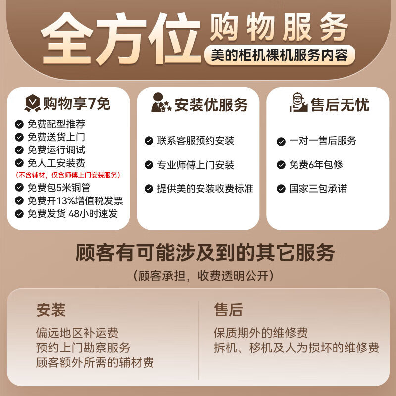 1、选了很久才选中这款空调的;收到货后,商品包装很完好,没有任何问题,安装师傅和客服非常负责任,非常推荐购买。
