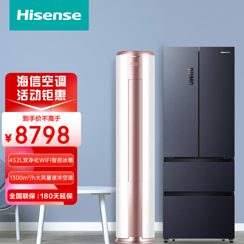 海信空调+冰箱套装 3匹柔风健康空调+452升全域净化多门 KFR-72LW/A390-X1+BCD-452WMK1DPQ价格:8298.00元!