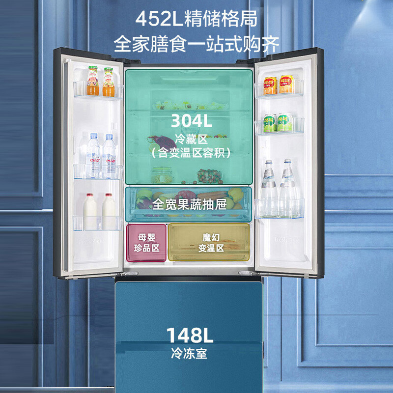 5、静音效果不错,制冷空间分区。法式空间利用率很高。双频也很节能。海信质量比较稳定,主要是冰箱做的很高,就能多利用空间。*价格也比较划算。买买买!