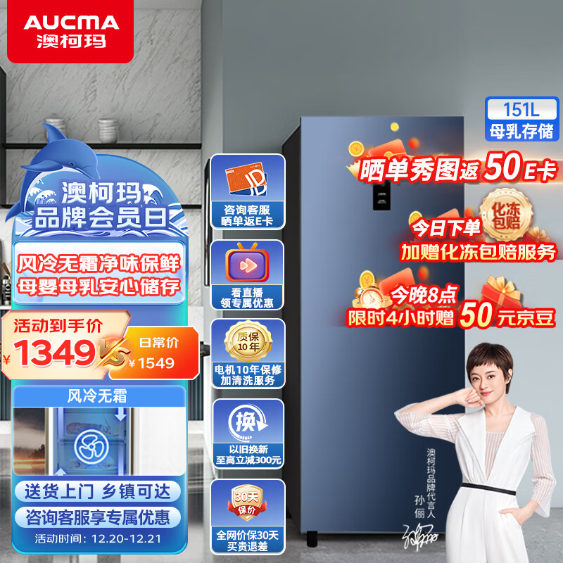澳柯玛(AUCMA)151升风冷家用立式冰柜母乳冷藏冷冻柜抽屉式冷柜囤货冷藏柜小冰柜家用小型冰箱BD-151WNE以旧换新价格:1449.00元!