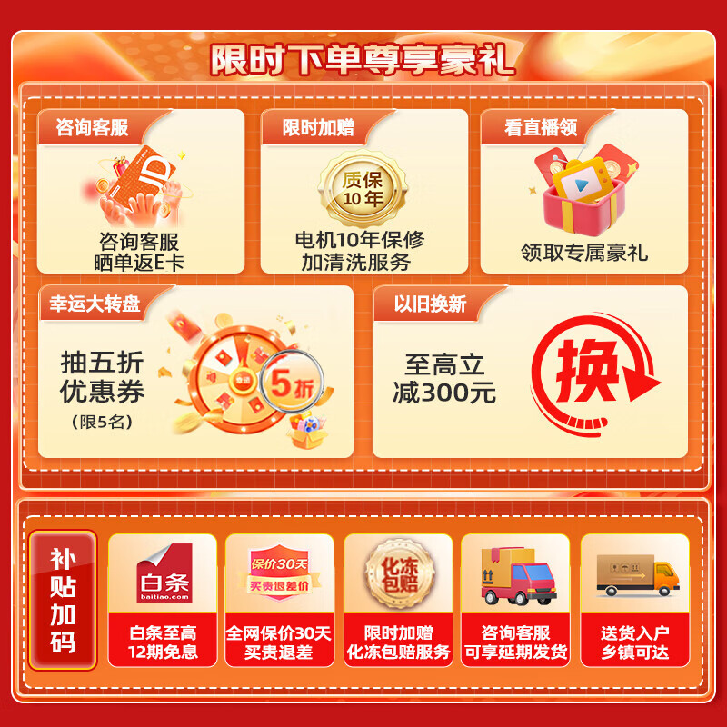 5、物流很快,包装很用心。立式造型不错,拿取方便,比卧式好用。冰箱里配置了几个抽屉的,防止食物串味。容量很大,设计合理。晚上通电声音小,噪音小,降温很快。