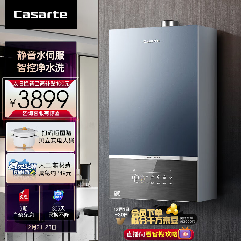 卡萨帝(Casarte)16升家用燃气热水器天然气母婴级恒温水伺服静音强排式下置风机多重净化JSQ31-16CWP3FPXCU1价格:3899.00元!