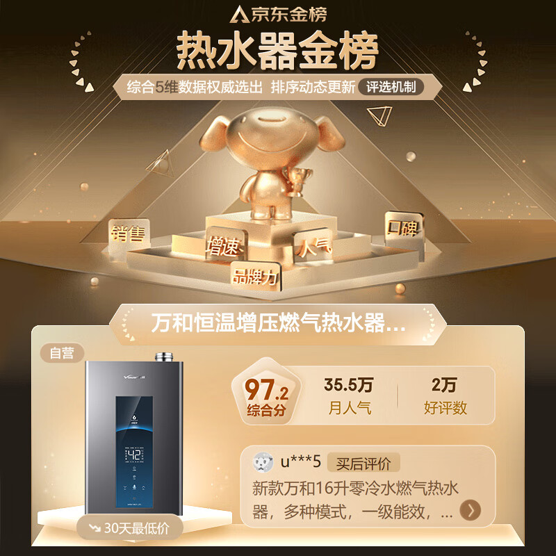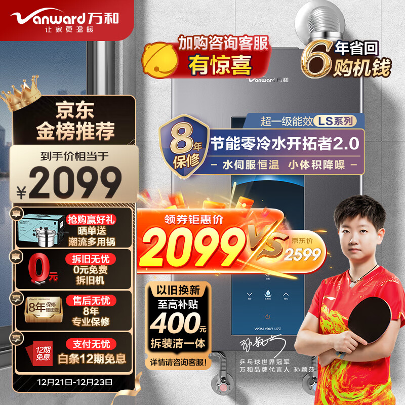 万和(Vanward)16升零冷水燃气热水器水伺服恒温一级能效冷凝式小体积降噪天然气增压MLS5D16以旧换新价格:2599.00元!