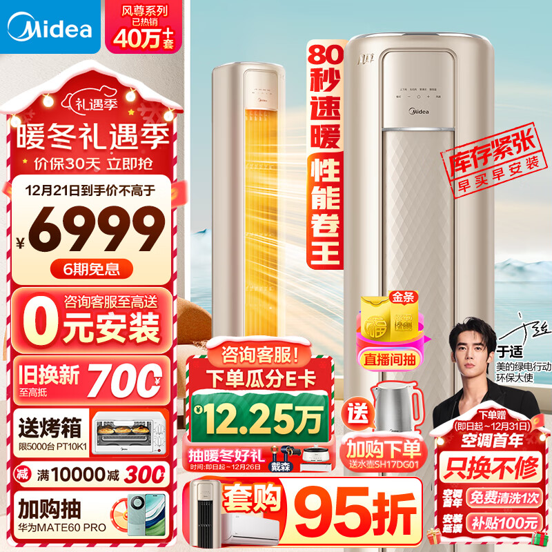 美的(Midea)空调 3匹 风尊 新一级能效 变频冷暖 客厅空调立式 空调柜机 京东小家智能家电 KFR-72LW/N8MZB1价格:6999.00元!