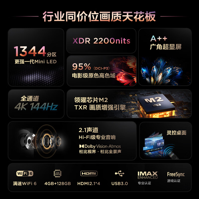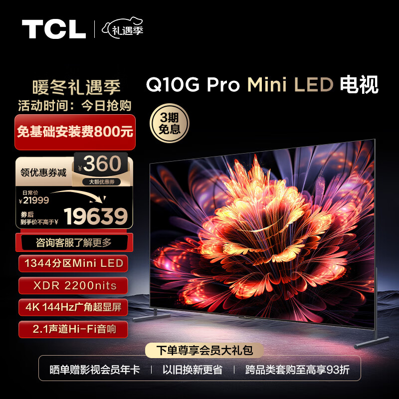 TCL电视 98Q10G Pro 98英寸 Mini LED 1344分区 2200nits 4K 144Hz 2.1声道音响 液晶智能电视机100价格:19999.00元!