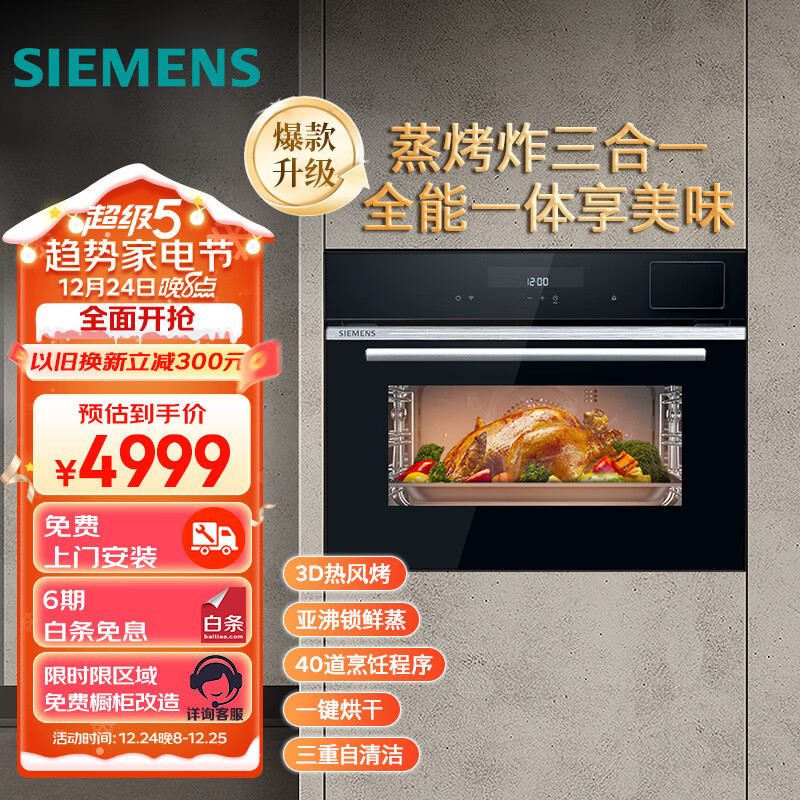 西门子(SIEMENS)嵌入式蒸烤炸一体机 自清洁 烤箱 蒸箱 热风炸 家用蒸烤箱 CS589ABS6W价格:4999.00元!
