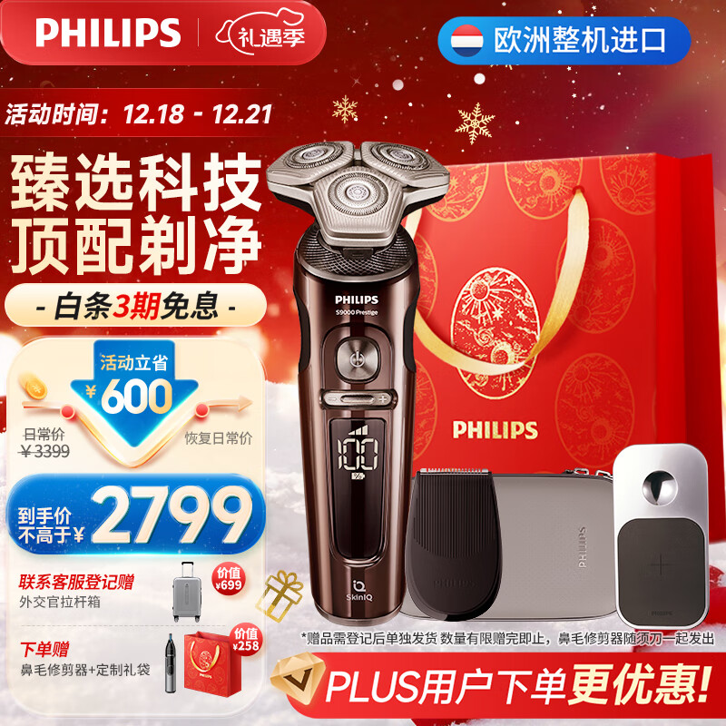 飞利浦(PHILIPS)男士电动剃须刀蜂巢奢享SP9系 SkinIQ科技刮胡刀 欧洲原装进口【圣诞礼物送男友送老公】SP9870/13价格:3299.00元!