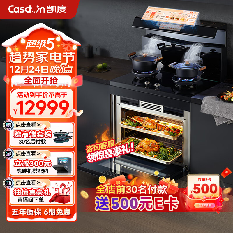 凯度(CASDON)集成灶蒸烤一体 集成灶一体灶 抽油烟机一体机 双热风蒸箱烤箱空气炸一体机JJZT-B2S8-Z3E价格:12999.00元!