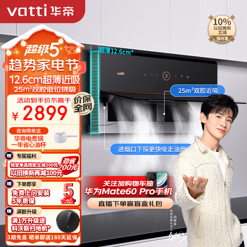 华帝(VATTI)抽油烟机 理想家X6 双腔超薄近吸油烟机25立方大风量一键自清洁 以旧换新 i11210价格:2899.00元!