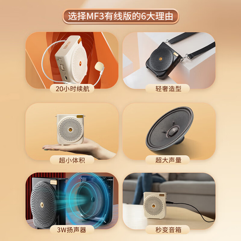 漫步者(EDIFIER)MF3 有线版便携式扩音器 小蜜蜂大功率教学专用教师导游扩音器 唱戏机 云岩白价格:139.00元!