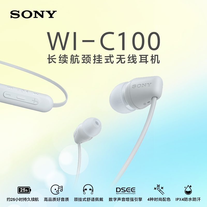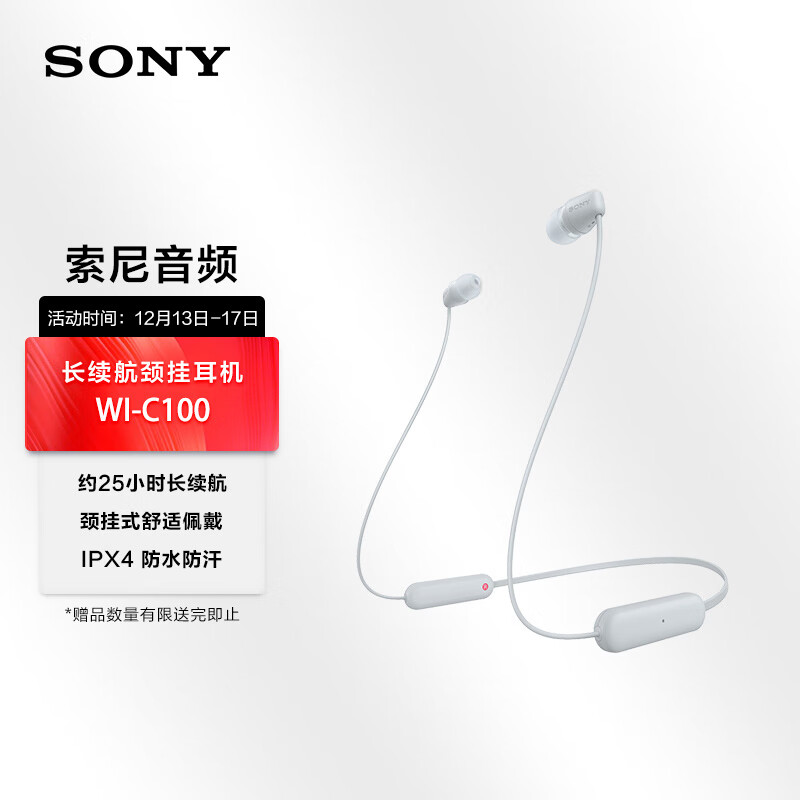 索尼(SONY)WI-C100 无线立体声 颈挂式 蓝牙耳机 IPX4防水防汗 约25小时长久续航 (WI-C200升级款) 白色价格:169.00元!