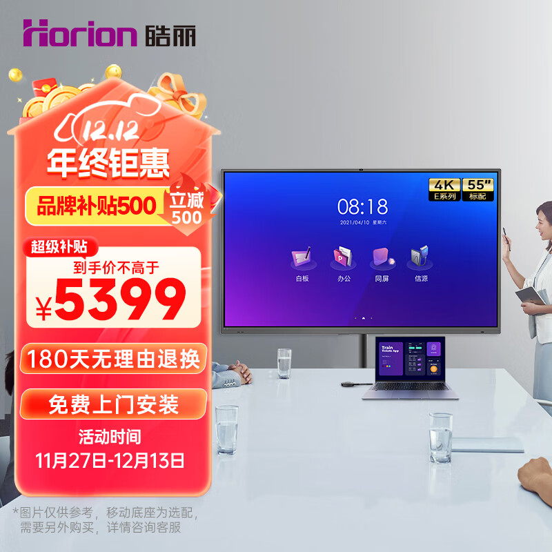皓丽会议平板电视 Horion企业版55英寸4K智能办公投影触屏一体机 教学电子白板/触摸平板电视智慧屏价格:6449.00元!