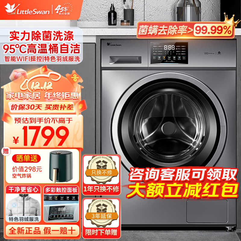 小天鹅(LittleSwan)家用滚筒洗衣机全自动 10公斤大容量婴儿内衣洗 除菌除螨 高温桶自洁 触控屏 TG100V23WDY价格:1799.00元!